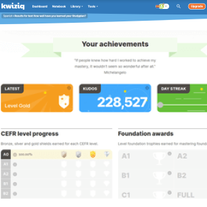 You gain kudos points for all of your learning successes, small and large. You rack up bronze, silver and gold stars for achieving levels of confidence in specific grammar topics. There are badges to be earned for consistent and productive study behaviours, and every level has a bronze, silver and gold shield for you to work toward, representing basic competence, proficiency and mastery in that level.