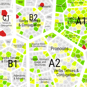 Your Brainmap is a very smart, detailed and ever-changing map made just for you, which provides a beautiful overview of your study topics divided into grammatical areas within each CEFR level.