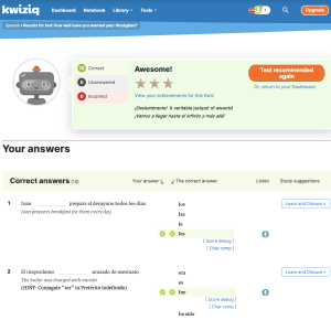 Kwizbot is the gateway to an ever-expanding set of learning materials, intelligently matched to your level and skills. He identifies your specific needs (what you've learned, not learned, and crucially, mislearned) and then addresses those needs with high-quality, engaging learning tools and materials. All of our in-depth lessons, engaging exercises and challenging kwizzes are carefully written by our expert language teachers.