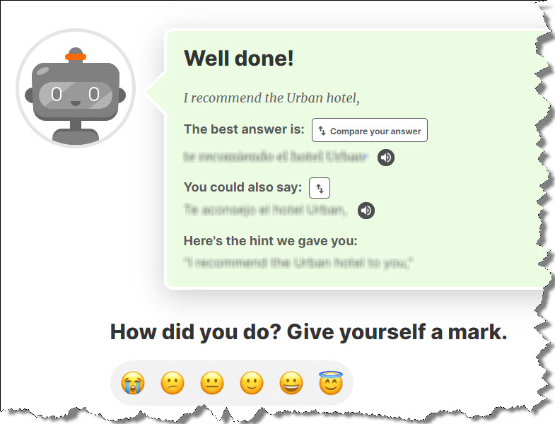 Writing challenges and dictations are self-scoring exercises, meaning that for each phrase you'll be offered corrections to help you pinpoint your mistakes, but the marking is up to you!